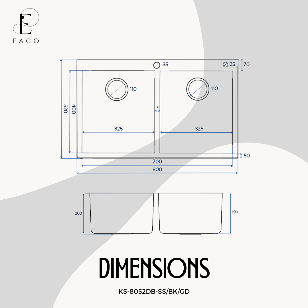 EACO 304 Stainless Steel Kitchen Sink KS-8052DB-BK
